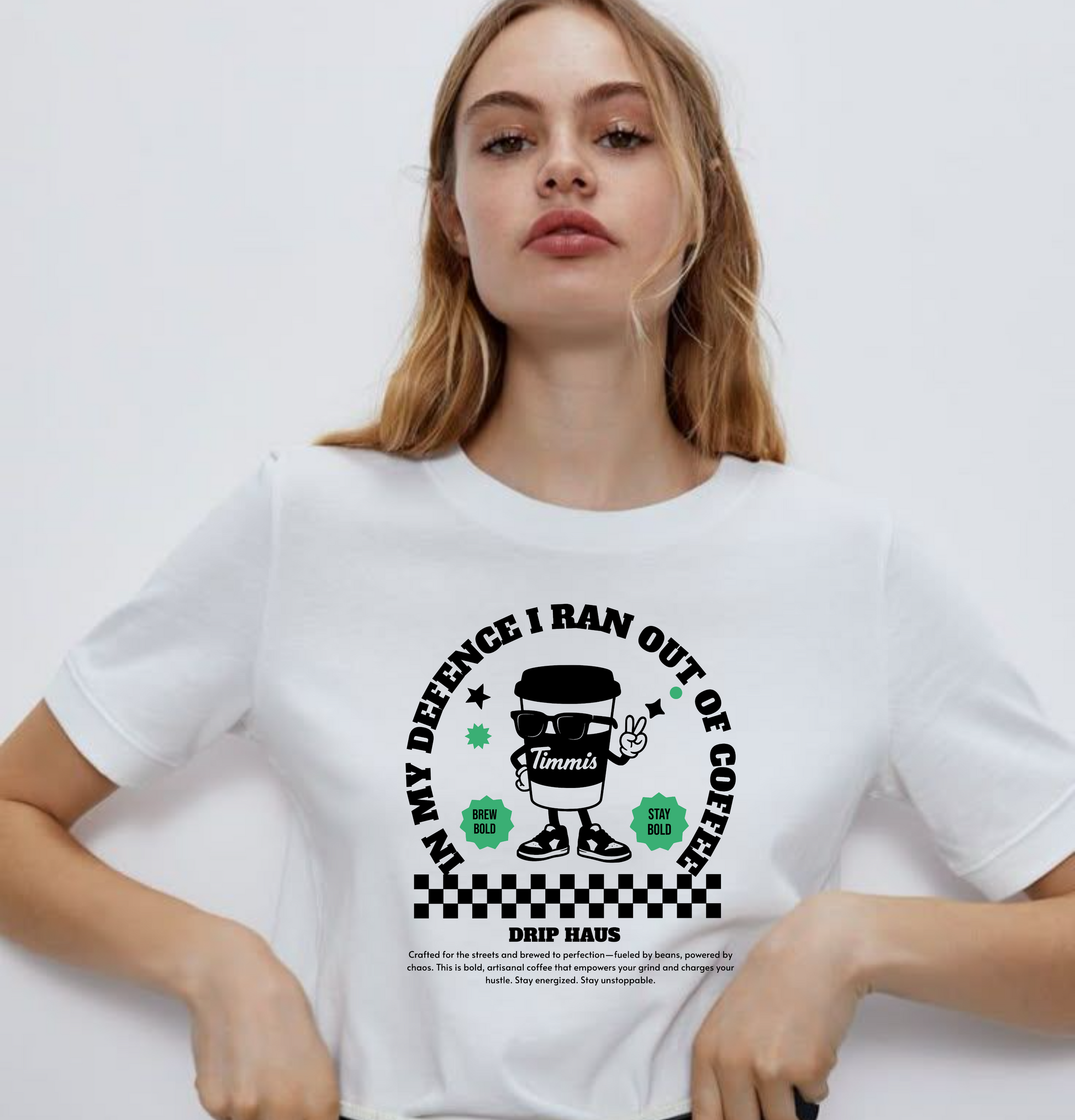 Caffeine meets culture with our “In My Defence I Ran Out of Coffee” tee – a cheeky nod to every streetwear rebel powered by bold brews. Whether you're rushing out the door or chilling at your fav café, this ultra-soft tee keeps you looking sharp and feeling cozy. Featuring our limited-edition Timmi’s mascot design, this shirt blends bold personality with casual comfort. For those who hustle hard and sip harder — this one’s for the coffee crew.